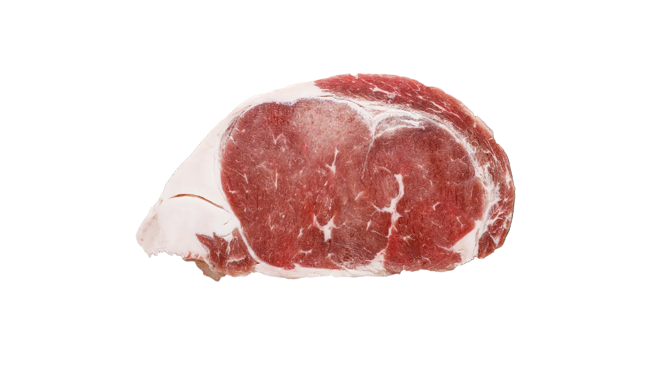 "Ojo de costilla" se obtiene de la parte superior de las costillas entre la sexta y décimo segunda. No tiene hueso, tiene un gran marmoleo y grasa natural que lo hace jugoso y de gran sabor.